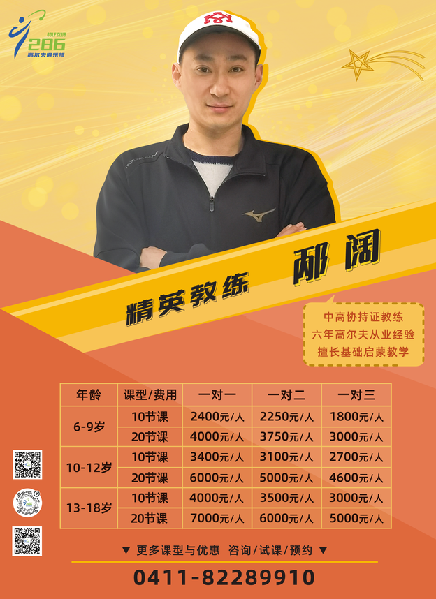 进钧高尔夫俱乐部拥有多名初中高协职业教练(包括前职业球员)常驻授课,涵盖从基础启蒙到职业进阶的全级指导。高级教练的执教经验均在10年以上,理论知识丰富,教学成绩突出,可根据学员情况量身定制训练计划,为各年龄段学员提供最专业的技术和体能训练。尤其在青少年教学方面,教练们结合青少年成长规律和国内外先进的培训理念,形成一套高效科学的训练方法,能帮助学员快速掌握动作要领,全面提高运动能力。